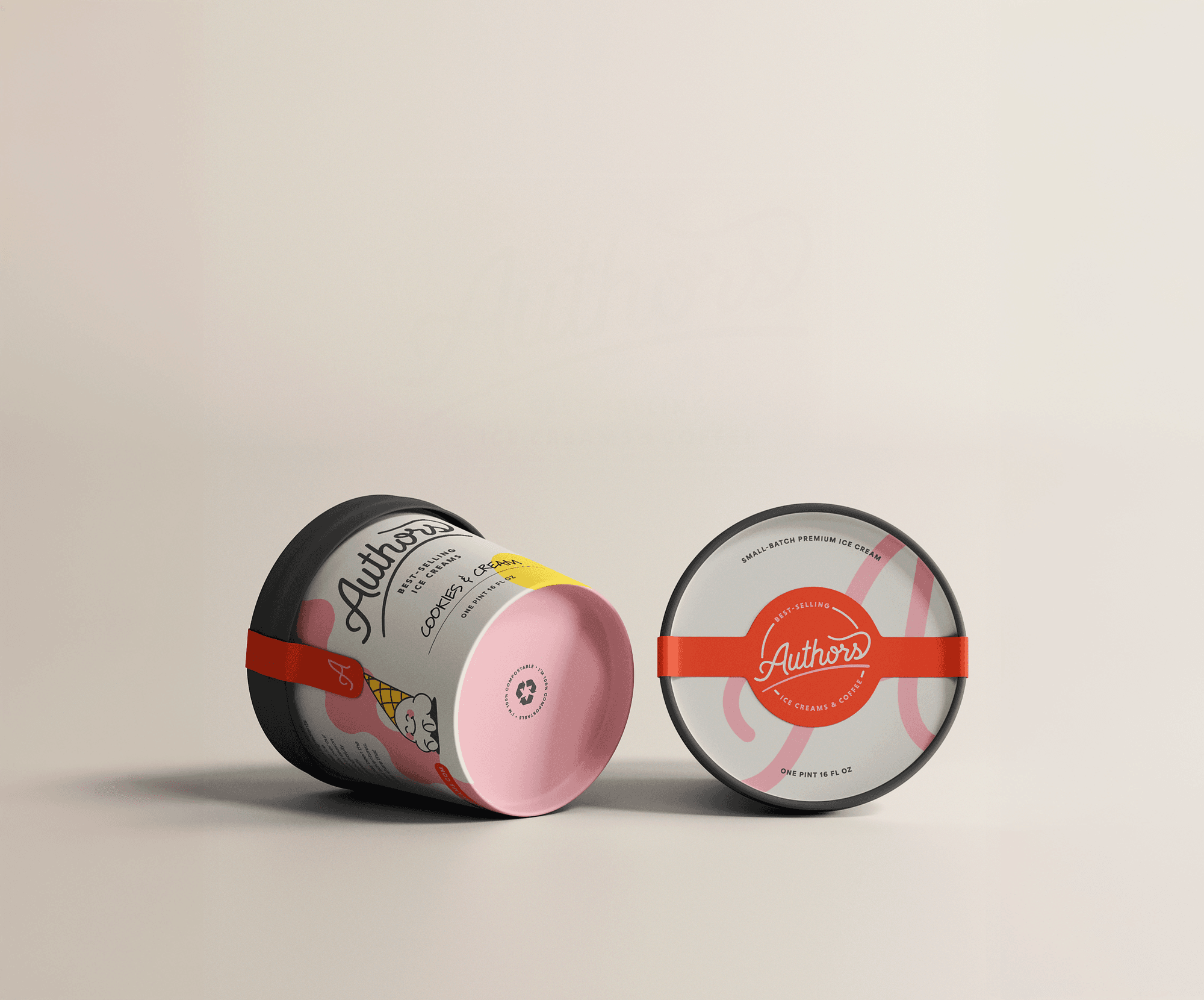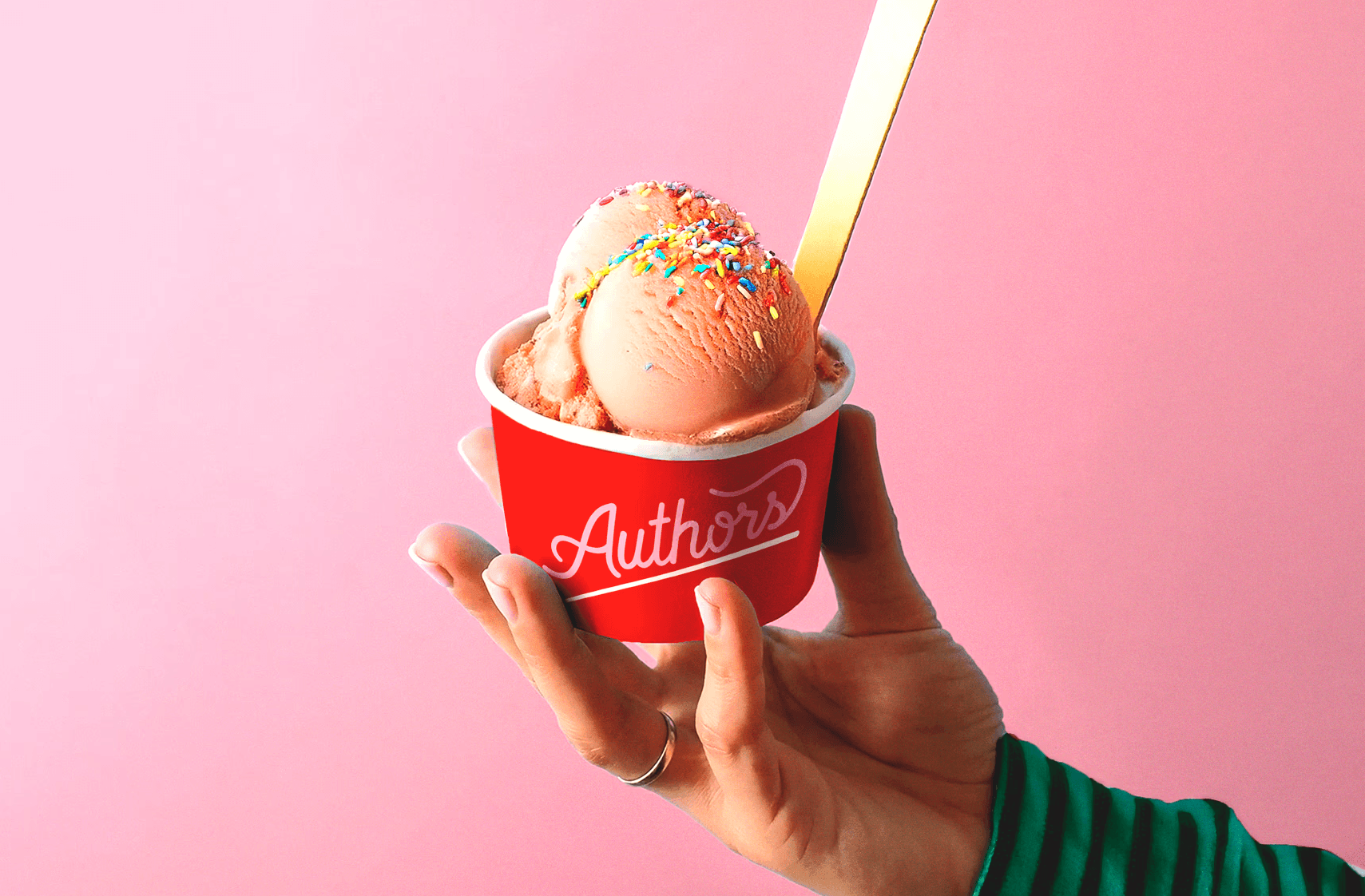 Authors Ice Creams & Coffee, located in Ashburn, Virginia, is a family-owned establishment renowned for its artisanal ice creams and specialty coffee offerings. Bringing a new name and plans to grow, they were seeking a fresh identity that would reflect the same joy that is brought to their customers with each bite. A script logotype paired with a pop-art inspired color palette and oversized graphics set the foundation for success, translating onto an ice cream truck, starter packaging, and their first brick and mortar. Plans to expand their high-quality flavors into stores are in flux.